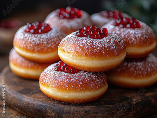 Mouth-watering Hanukkah sufganiyot images showcasing traditional jelly-filled donuts enjoyed during the holiday