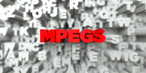 MPEGS - Red text on typography background - 3D rendered royalty free stock image. This image can be used for an online website banner ad or a print postcard.