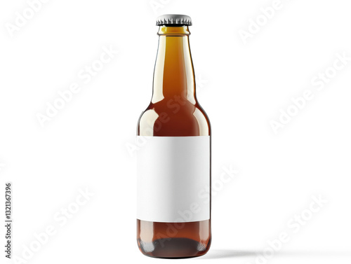 (MuA premium liquid bottle with white blank label for mock-up, deep beer reflections, high-end advertisement lighting, white backgroundltiple values)