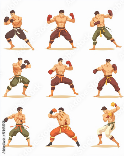 muaythai character flat vector style
