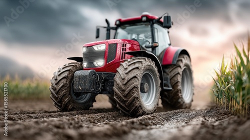 Muddy Tractor in Farmland
