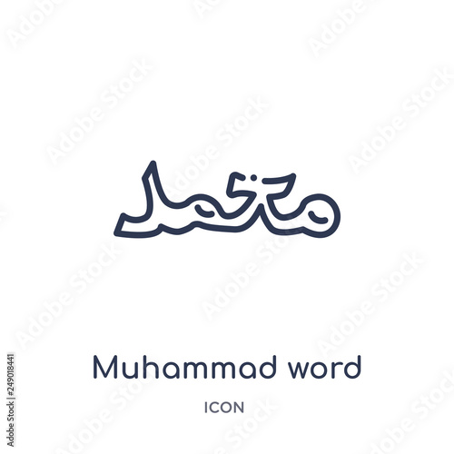muhammad word icon from religion outline collection. Thin line muhammad word icon isolated on white background.