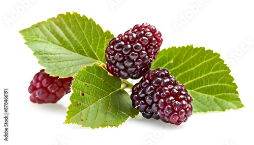 Mulberry berry with leaf isolated on white background macro