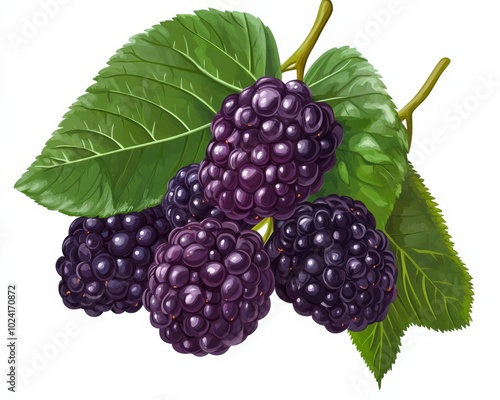 Mulberry: Ripe Berry with Healthy Leaves. Delicious and Clean Fruit Image
