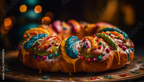 Multi colored dessert table with homemade indulgences generative AI