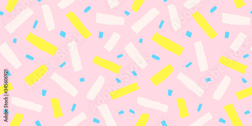 Multicolor confetti seamless pattern. Colorful abstract background. Hand drawn vector illustration.