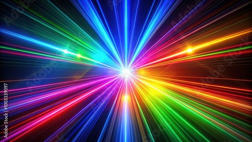 Multicolored bright laser rays on black background, cosmic abstract pattern, laser, rays, colorful, bright, cosmic
