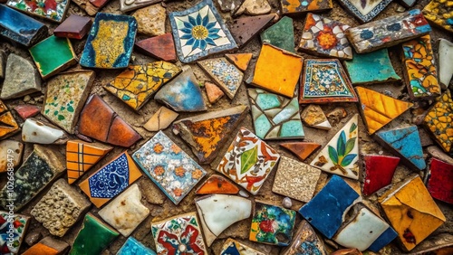 Multicolored Broken Tiles: A Documentary of Urban Decay and Vibrant Resilience in Uneven Surfaces