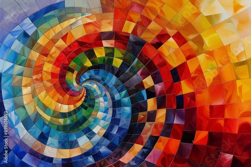 Multicolored composition consisting of squares and forming a spiral. Placed on the entire image.