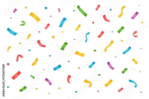 Multicolored confetti falling, cascading vibrant paper strips against transparent backdrop, representing festive celebration moments