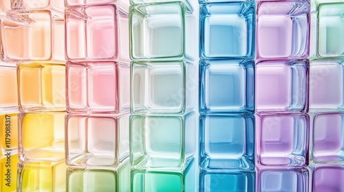 Multicolored glass cubes create intricate patterns on a vibrant gradient background showcasing modern artistry and urban aesthetics