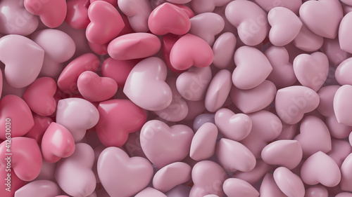 Multicolored Heart background. Valentine Wallpaper with Pink and Light Pink love hearts. 3D Render