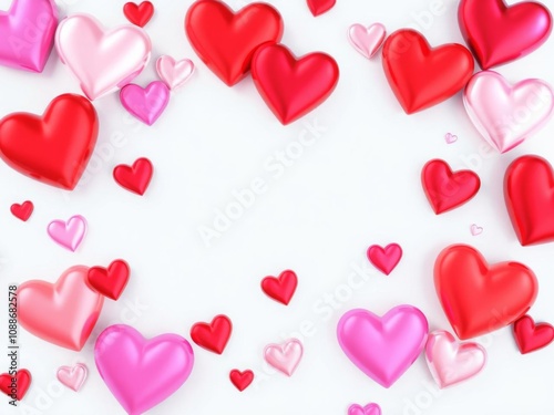 Multicolored heart background with pink and red glass, metallic love hearts, 3D render, background, wallpaper, valentine