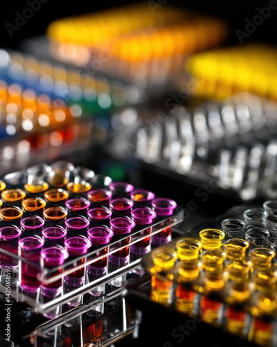 Multicolored Liquids in Laboratory Test Plates Research Science Innovation and Analysis of Medicine