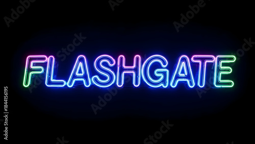 Multicolored neon sign illustration showing the word flashgate against a dark background