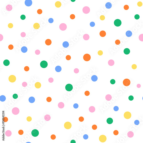 Multicolored party falling confetti seamless pattern. Colored circles festive background.