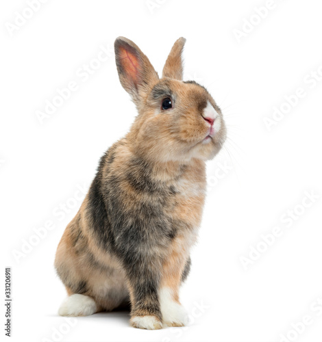 Multicolored Rabbit sitting, isolated on white