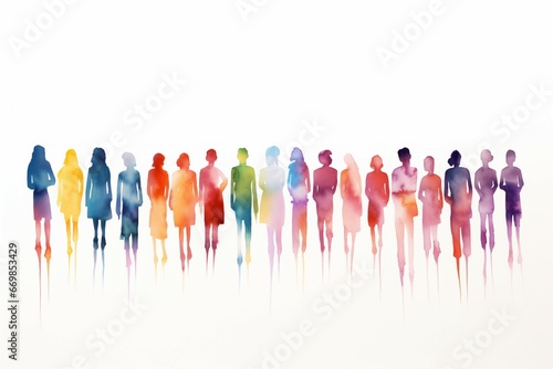 Multicolored silhouettes of people standing next to each other