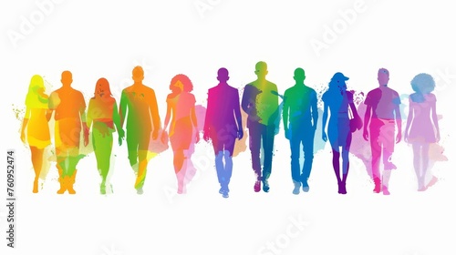 Multicolored Spectrum Silhouettes of People on White Background Illustration
