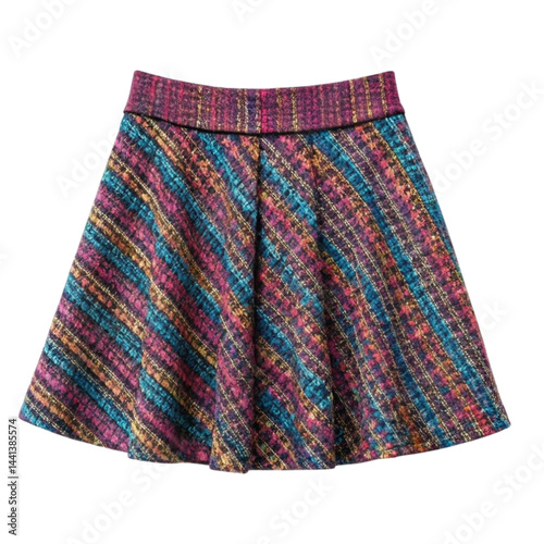 Multicolored Striped ALine Pleated Mini Skirt in Teal Purple Pink and Gold isolated on transparent background Generative AI