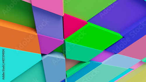 Multicolored tech background, with a geometric 3D structure. Clean, vibrant design with simple, bright, modern forms. 3D render