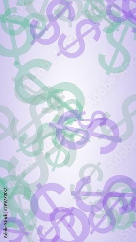 Multicolored translucent dollar signs on white background. 3D illustration