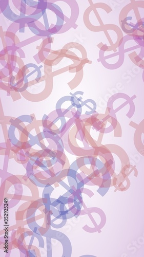 Multicolored translucent dollar signs on white background. Red tones. 3D illustration