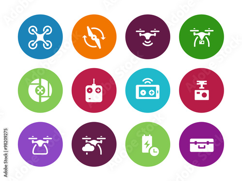 Multicopter drone circle icons on white background.