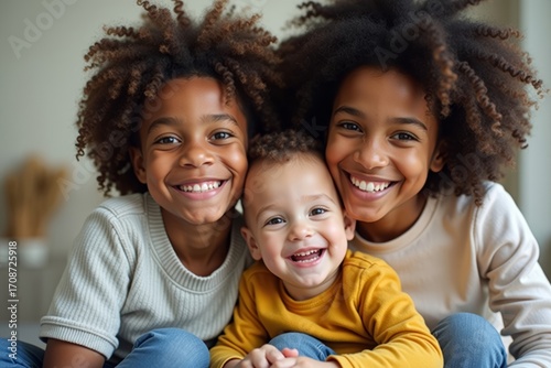 Multicultural Siblings Embracing Toddler in Heartwarming Closeup Photo