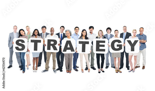 Multi-Ethnic Group Of People Holding The Word Strategy