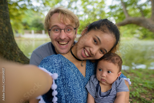Multi-ethnic young family bonding together at the park