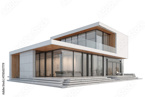 Multi-level modern minimalist house with glass walls and flat roof.