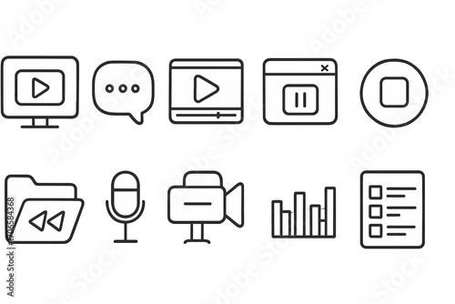 Multimedia communication line icon set. video, audio, online interface icons outlined