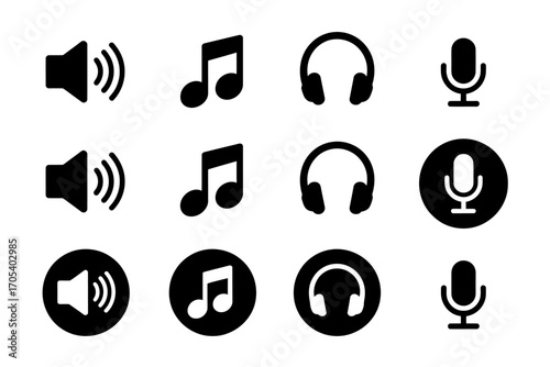 Multimedia Icons Set with Sound Music Headphones and Microphone in Vector Format Represents Modern Communication and Technology