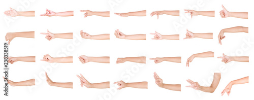 Multiple boy caucasian hand gestures isolated over the white background, set of multiple images