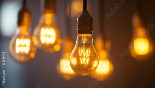 Multiple glowing light bulbs hang from the ceiling casting a warm light.