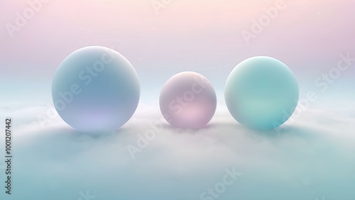 Multiple translucent spheres of different sizes in pastel shades,