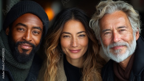 Multiracial individuals smiling warmly, radiating joy and connection in a vibrant, clean composition