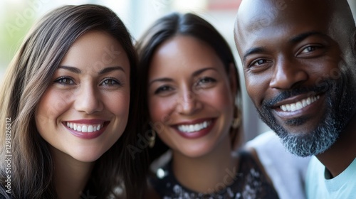 Multiracial individuals smiling warmly, radiating joy and connection in a vibrant, clean composition.
