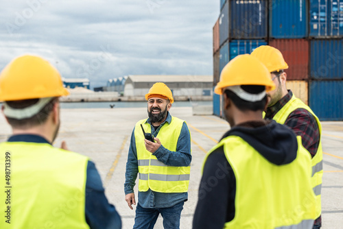 Multiracial people working together at Freight Terminal Port - Focus on center man face