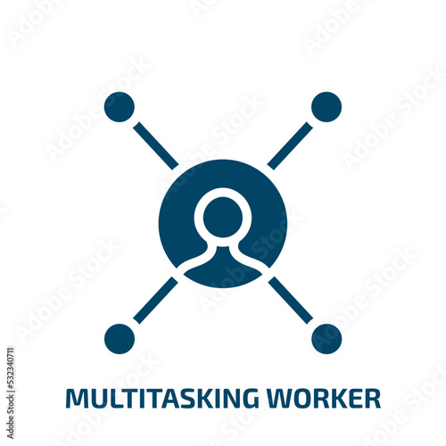 multitasking worker icon from user interface collection. Filled multitasking worker, worker, work glyph icons isolated on white background. Black vector multitasking worker sign, symbol for web design