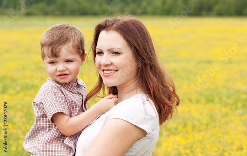 Mum with the son on the nature