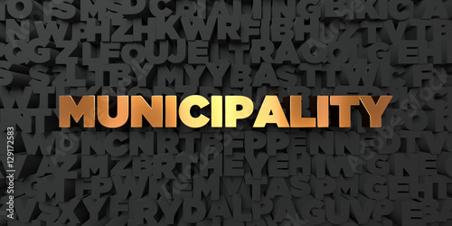 Municipality - Gold text on black background - 3D rendered royalty free stock picture. This image can be used for an online website banner ad or a print postcard.