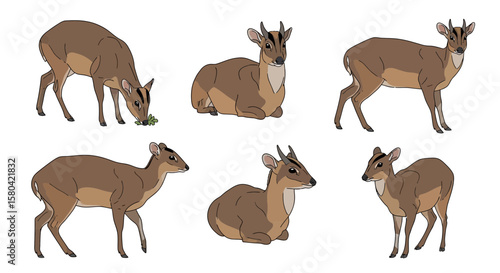 Muntjac deer in various poses illustrating concept of Animals in different poses