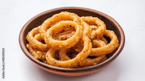 Murukku traditional Indian snack made from rice flour and lentils served in a bowl against a clean white background