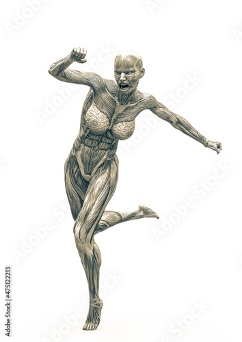 muscle woman running in white background rear view