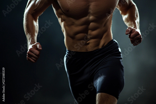 Muscular bodybuilder with biceps in gym made with generative AI technology