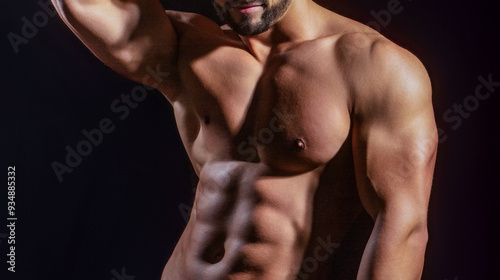 Muscular male torso Six pack. Perfect abs, shoulders, and chest. Close up Abs. Closeup torso. Ab. Muscular torso and ripped abs. Sexy male muscular body. Man with naked torso showing six pack abs.