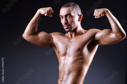 Muscular man in dark studio