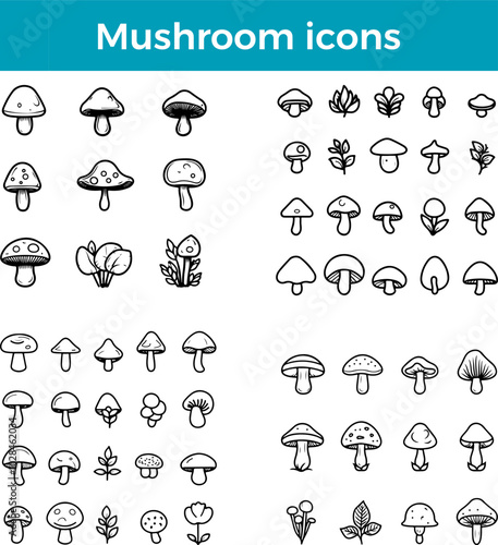 Mushroom icons vector edible fungi nature food organic vegetable healthy forest ingredient illustration